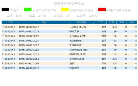 生產(chǎn)完成率及品質(zhì)檢驗狀態(tài)看板
